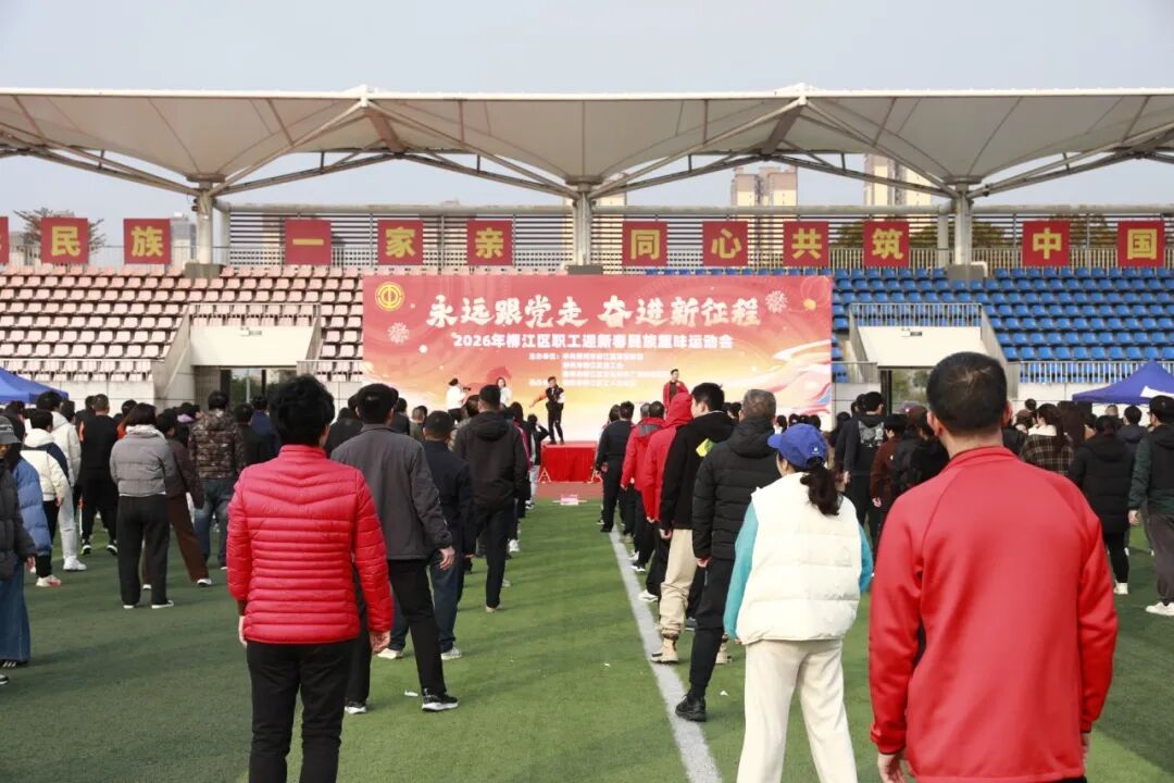 2月7日,2026年柳江区“永远跟党走 奋进新征程”职工迎新春民族趣味运动会在区体育园足球场举行。区委书记玉秋静参加活动并宣布运动会开幕,区委副书记、区长李团,区人大常委会主任陈建军,区政协主席罗云飞等区四家班子领导参加活动。区委副书记张扬主持运动会开幕式。