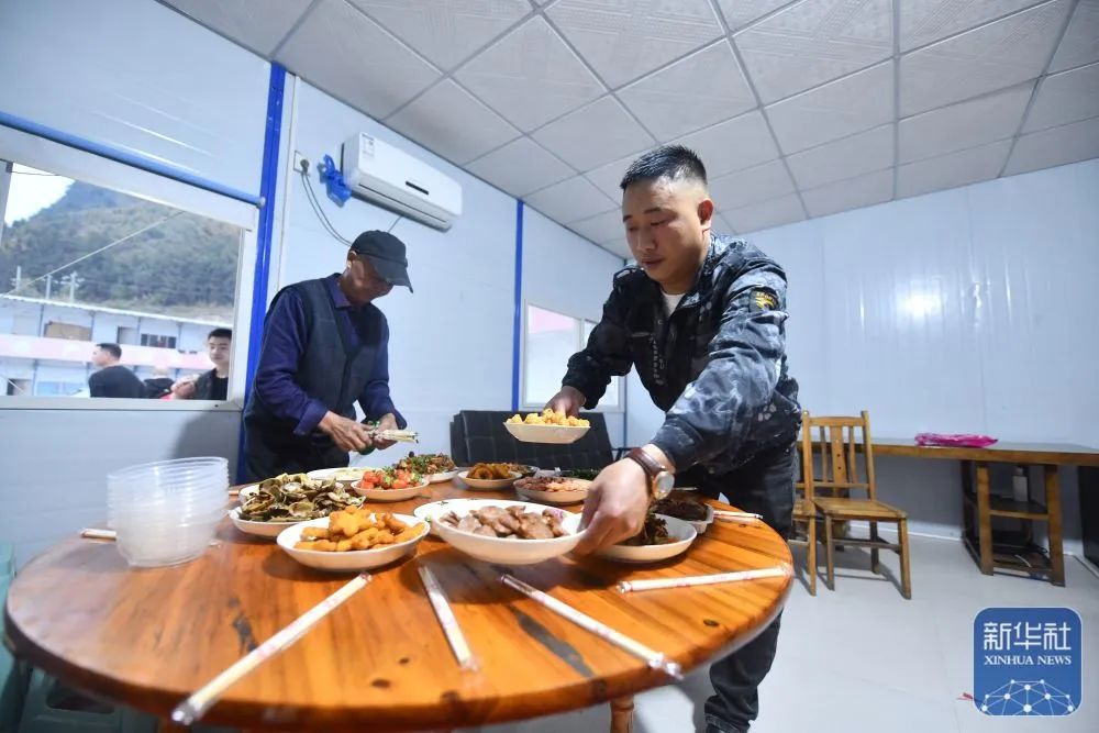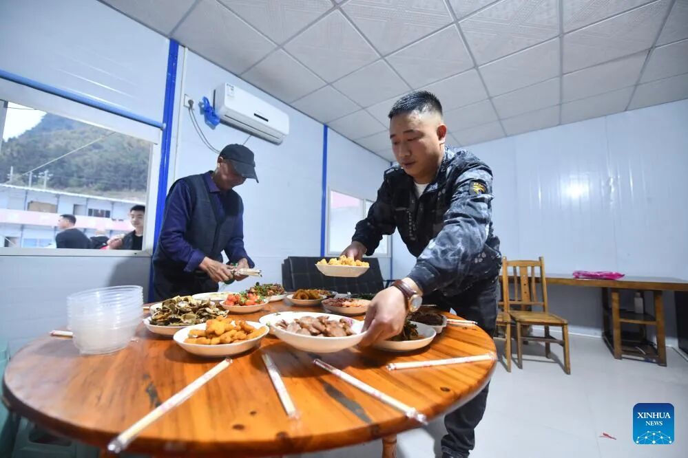 Workers prepare dinner at the construction site of an expressway linking Yufeng and Yizhou of south China's Guangxi Zhuang Autonomous Region in Liuzhou of Guangxi, Jan. 22, 2025.The Chinese New Year, or the Spring Festival, will fall on Jan. 29, marking the beginning of the Year of the Snake. More than 100 workers of China Railway 12th Bureau Group Co., Ltd. will remain at the construction site of an expressway linking Yufeng of Liuzhou City and Yizhou of Hechi City in Guangxi this Spring Festival, China's traditional occasion for family reunion.As the Chinese New Year is drawing near, many family members of these workers have arrived at the construction site in Liuzhou. Meanwhile, a series of festive activities are going on here as well. (Xinhua/Huang Xiaobang)