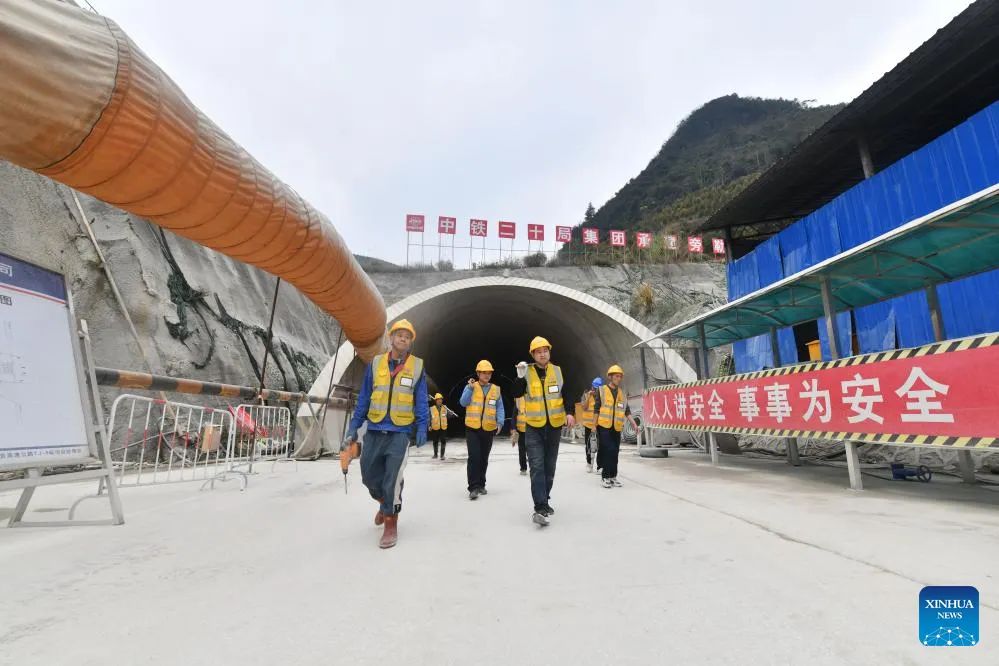 Workers are pictured at the construction site of an expressway linking Yufeng and Yizhou of south China's Guangxi Zhuang Autonomous Region in Liuzhou of Guangxi, Jan. 23, 2025.The Chinese New Year, or the Spring Festival, will fall on Jan. 29, marking the beginning of the Year of the Snake. More than 100 workers of China Railway 12th Bureau Group Co., Ltd. will remain at the construction site of an expressway linking Yufeng of Liuzhou City and Yizhou of Hechi City in Guangxi this Spring Festival, China's traditional occasion for family reunion.As the Chinese New Year is drawing near, many family members of these workers have arrived at the construction site in Liuzhou. Meanwhile, a series of festive activities are going on here as well. (Xinhua/Huang Xiaobang)
