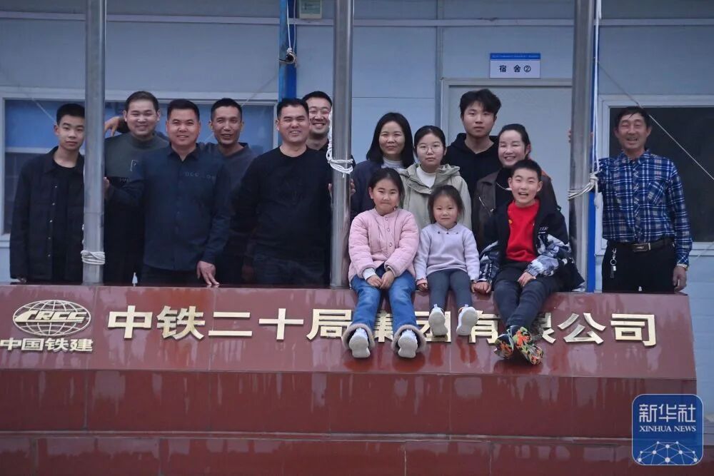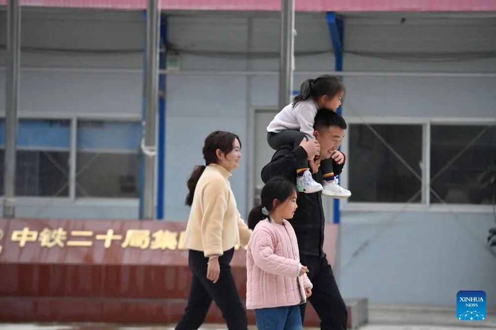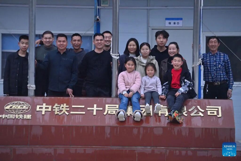 Worker Chen Gongxing and his family members are pictured at the construction site of an expressway linking Yufeng and Yizhou of south China's Guangxi Zhuang Autonomous Region in Liuzhou of Guangxi, Jan. 22, 2025.The Chinese New Year, or the Spring Festival, will fall on Jan. 29, marking the beginning of the Year of the Snake. More than 100 workers of China Railway 12th Bureau Group Co., Ltd. will remain at the construction site of an expressway linking Yufeng of Liuzhou City and Yizhou of Hechi City in Guangxi this Spring Festival, China's traditional occasion for family reunion.As the Chinese New Year is drawing near, many family members of these workers have arrived at the construction site in Liuzhou. Meanwhile, a series of festive activities are going on here as well. (Xinhua/Huang Xiaobang)