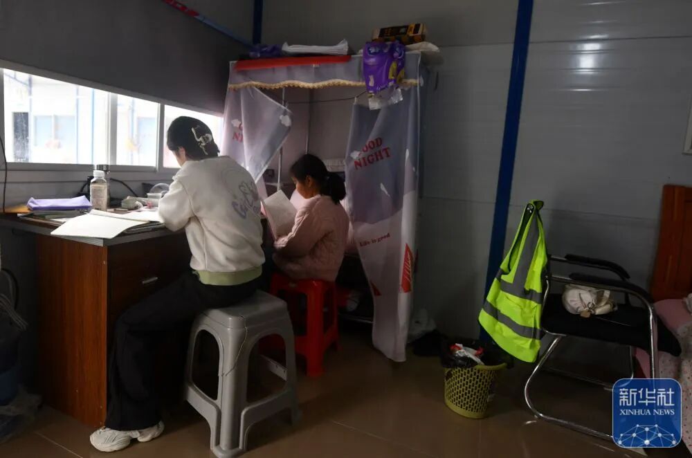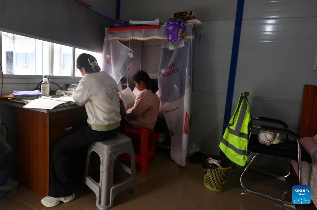 Chen Yimiao, the 11-year-old daughter of a construction worker, does her homework at her father's dormitory on the construction site of an expressway linking Yufeng and Yizhou of south China's Guangxi Zhuang Autonomous Region in Liuzhou of Guangxi, Jan. 23, 2025.The Chinese New Year, or the Spring Festival, will fall on Jan. 29, marking the beginning of the Year of the Snake. More than 100 workers of China Railway 12th Bureau Group Co., Ltd. will remain at the construction site of an expressway linking Yufeng of Liuzhou City and Yizhou of Hechi City in Guangxi this Spring Festival, China's traditional occasion for family reunion.As the Chinese New Year is drawing near, many family members of these workers have arrived at the construction site in Liuzhou. Meanwhile, a series of festive activities are going on here as well. (Xinhua/Huang Xiaobang)