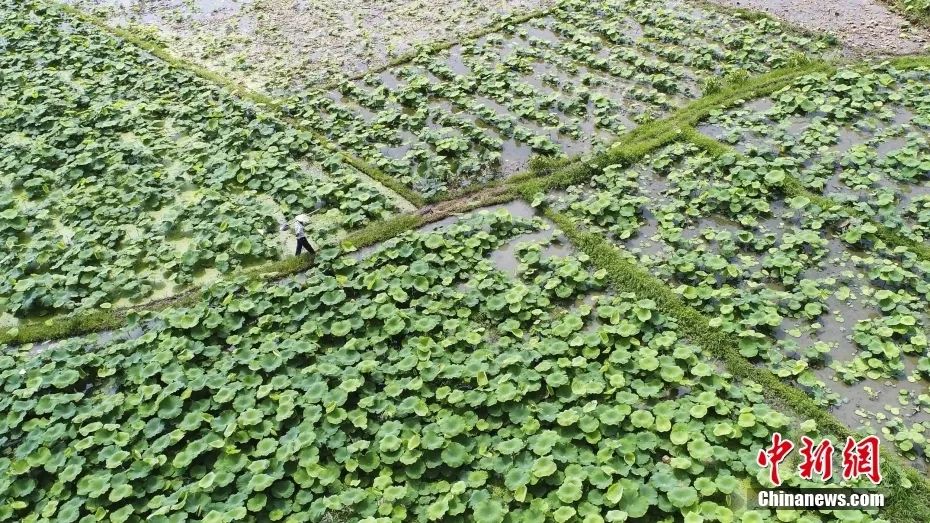 “中国玉藕之乡”柳州柳江区百朋镇怀洪村,连片的藕田、翠绿的慈姑田、错落有致的村庄、蔚蓝的天空、连绵的群山相映成景,构成一幅和美的乡村画卷。