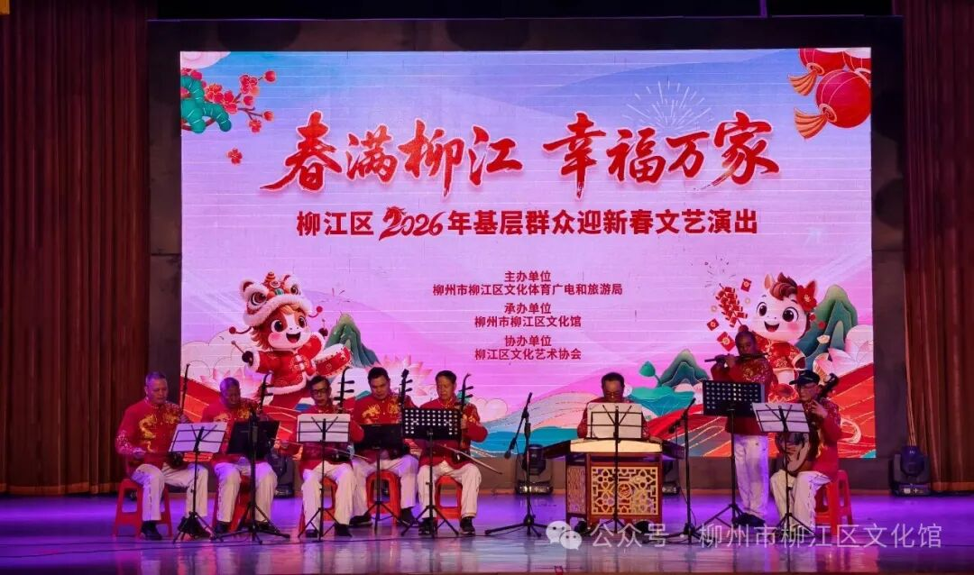 在新春佳节即将来临之际,为营造喜庆祥和的节日氛围,丰富人民群众的精神文化生活,展示柳江区群众文化的丰硕成果和昂扬向上的精神风貌,柳江区文化馆于2026年2月4日至5日,精心策划并成功举办了“柳江区2026年少儿迎新春文艺演出”和“柳江区2026年基层群众迎新春文艺演出”两场文化盛宴。