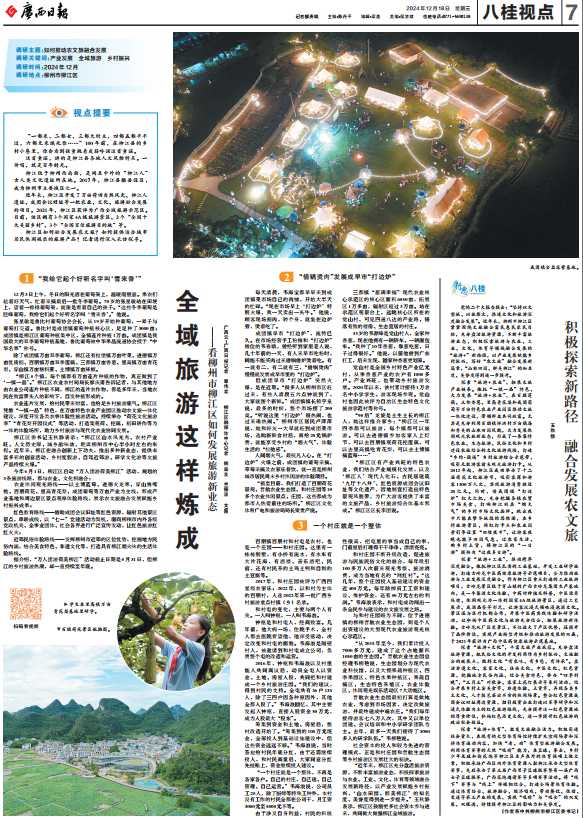 《广西日报》整版刊发《全域旅游这样炼成看柳州市柳江区如何发展旅游新业态》,