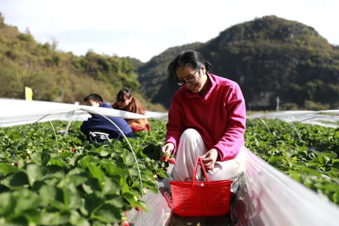 而在道路的另一边,一片片郁郁葱葱的草莓园映入眼帘,圆润饱满的草莓如同点缀在绿色画布上的颗颗红宝石,闪耀着诱人的光泽。“吃完成团‘打边炉’又来摘草莓,这草莓具有独特的奶香味,水嫩多汁,给人一种细腻、嫩滑的感觉,甜度恰到好处。”市民石莎莎说,成团的草莓很有名,特意过来品尝新品种富硒奶油草莓,游玩过程很惬意很享受。