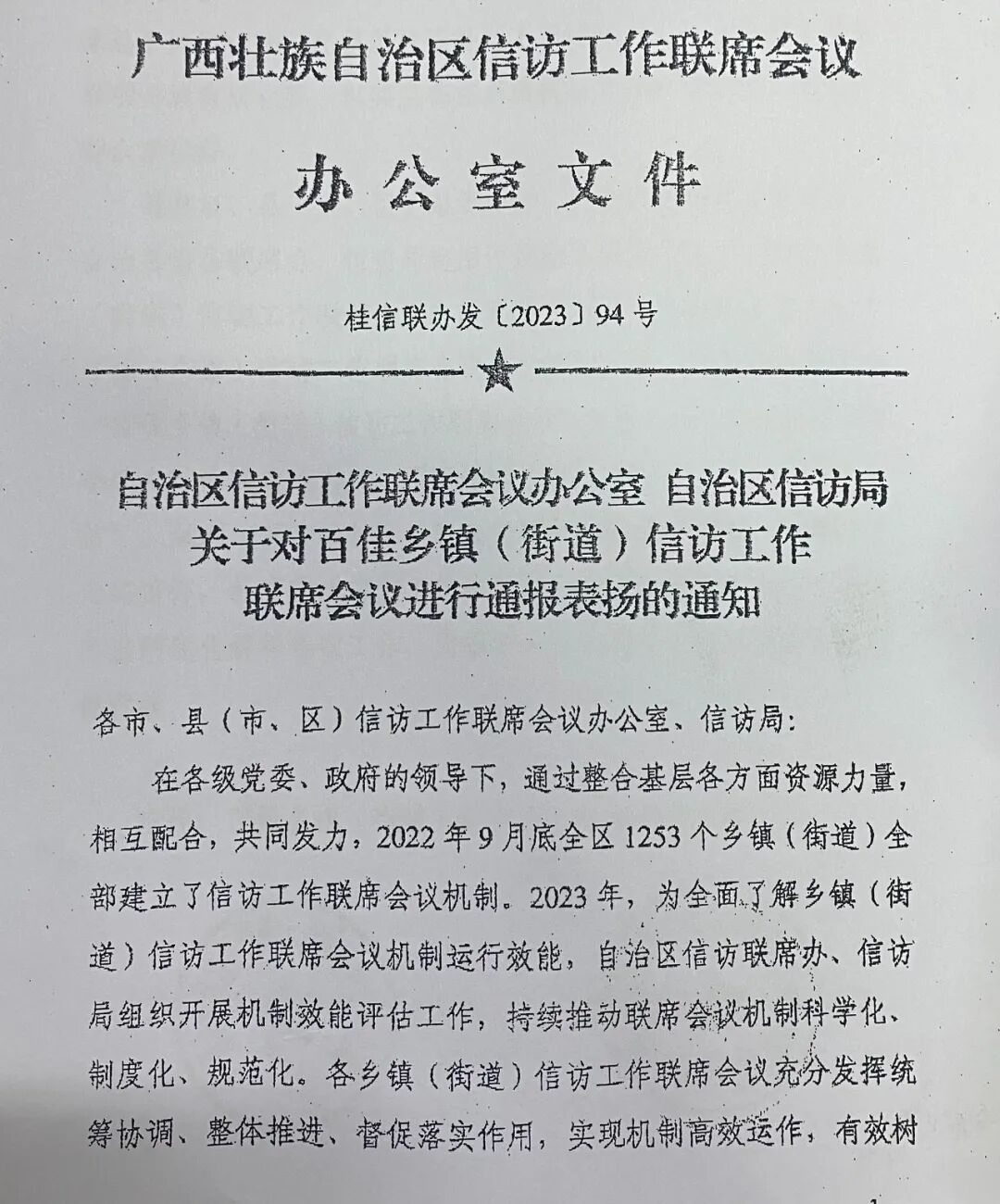 近日,自治区信访联席办、信访局公布了“百佳乡镇(街道)信访工作联席会议”名单。拉堡镇以实干实绩擦亮信访工作联席会议,获通报表扬。