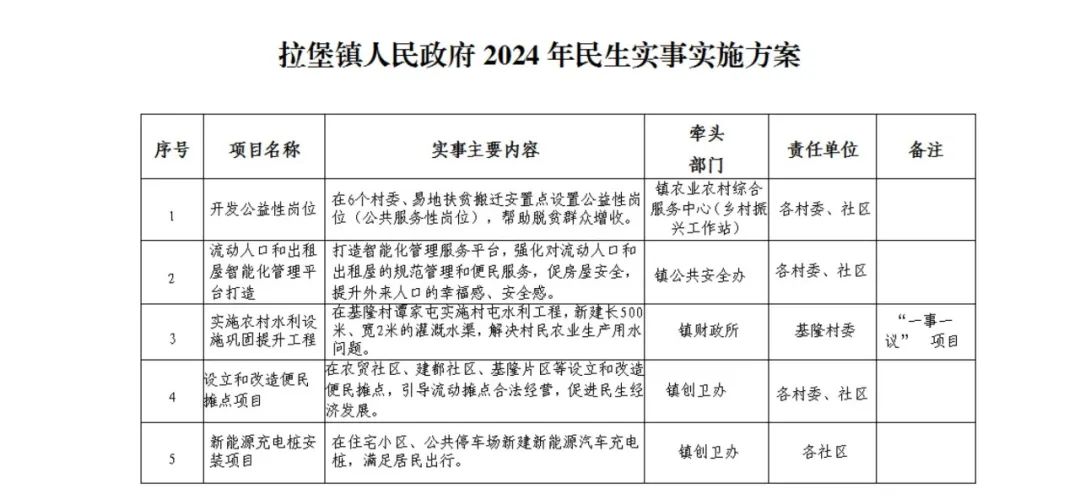 本次大会票选拉堡镇人民政府2024年度民生实事项目现公布如下: