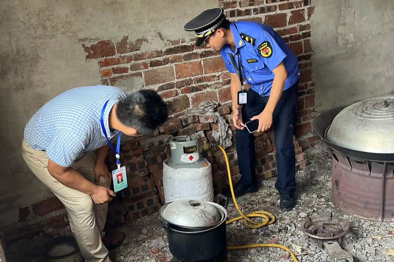 8月19日,工作组到穿山镇高平村开展“敲门行动”,为村民提供“家门口”的安全服务。工作组携带专业检测工具,对居民厨房内的燃气设施进行“全流程体检”:重点检查燃气管道老化情况、接口密封性能,逐项排查燃气灶具、减压阀、连接软管的安全状态,尤其关注是否存在使用直排式热水器等违规行为。