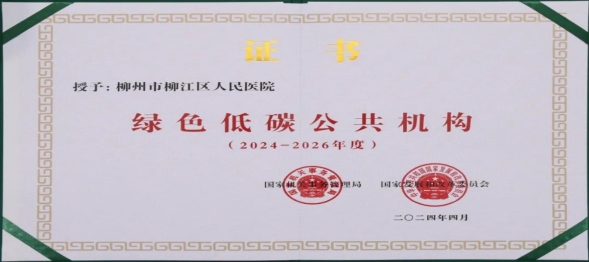 柳州市柳江区人民医院荣获全国“绿色低碳公共机构”称号