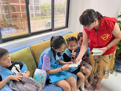 活动现场,工作人员将宣传手册派发到每一位小朋友手中,以通俗易懂的语言向小朋友讲解垃圾分类知识,通过抢答和小游戏的方式引导小朋友们思考垃圾分类的作用和意义,鼓励大家从“小”朋友做起,从“小”行动做起。