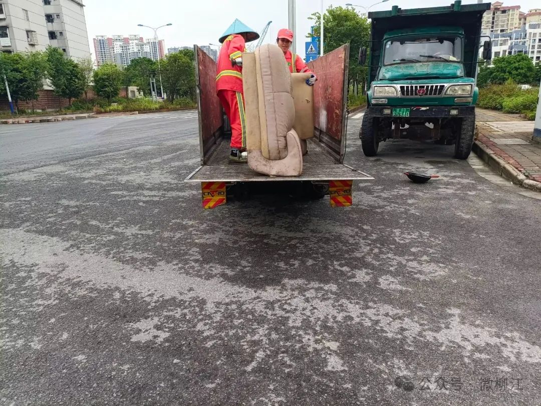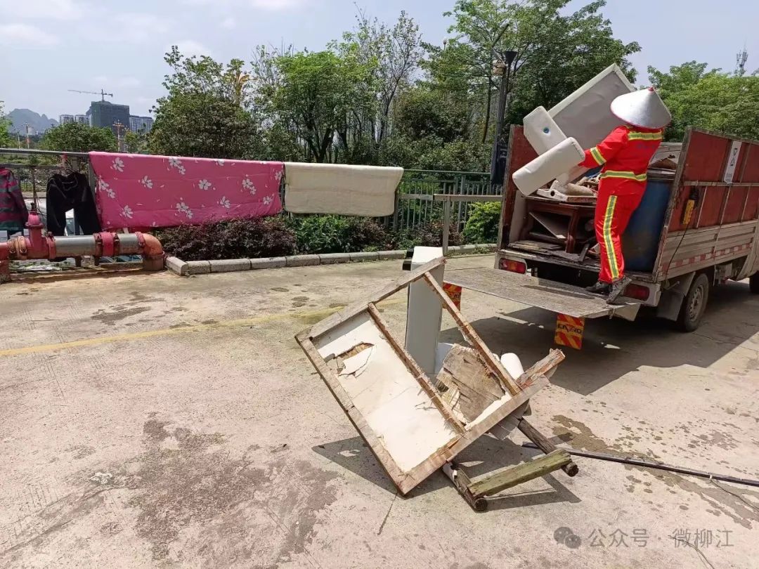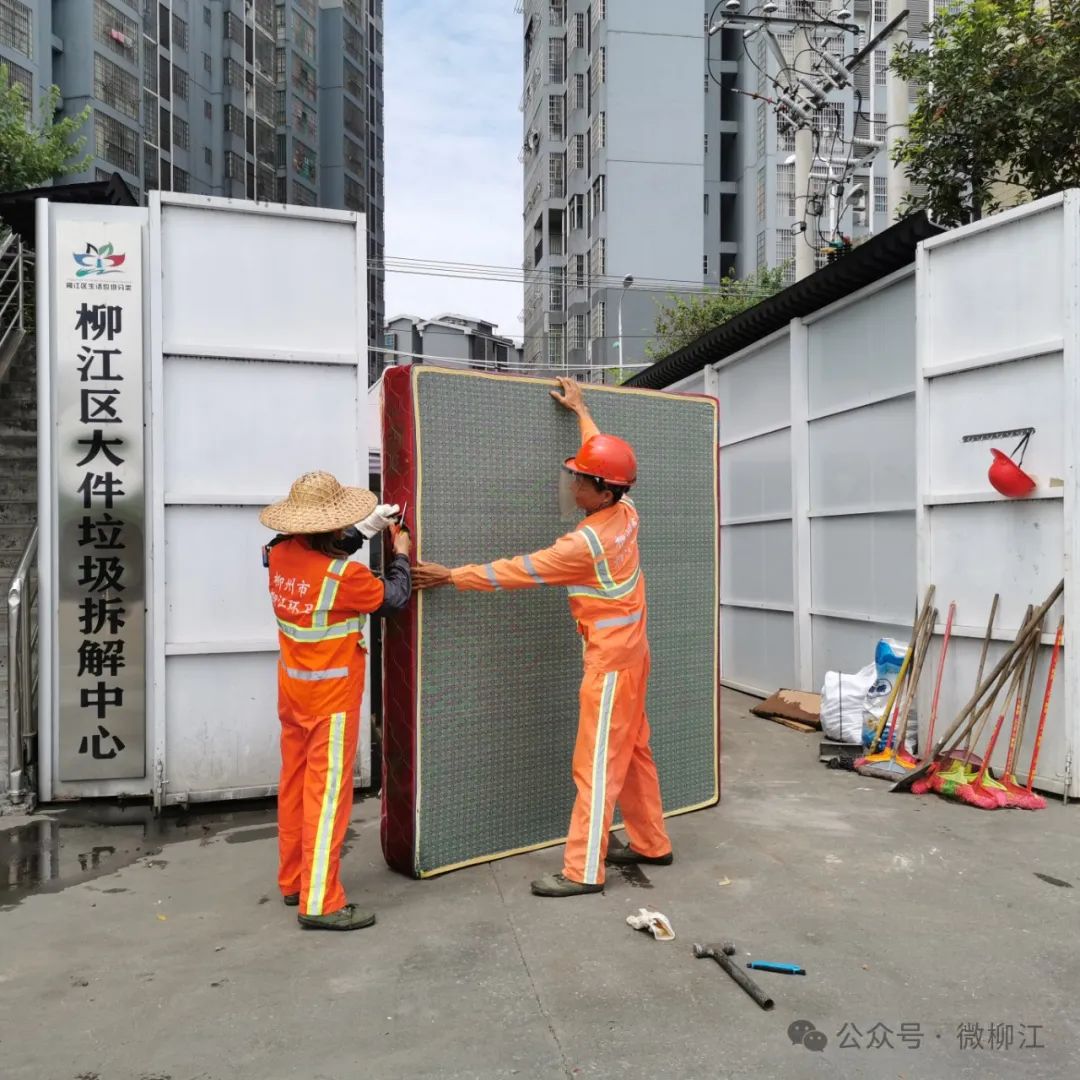 为有效消除该安全隐患,2023年5月,柳江区环卫所实行“定点投放、巡查报备、预约收运”模式,开通大件垃圾预约收运服务热线,每月“逢5”(5日、15日、25日)入社区暂存点免费集中清运大件垃圾至分拣中心,让居民的“扔”与环卫部门的“收”形成有效衔接,让大件垃圾处理“最后一公里”得以高效进行。据统计,2024年至今,柳江区环卫所共清运大件垃圾约350.55吨,有效提升了小区回收服务的便捷度,切实改善柳江人居环境。