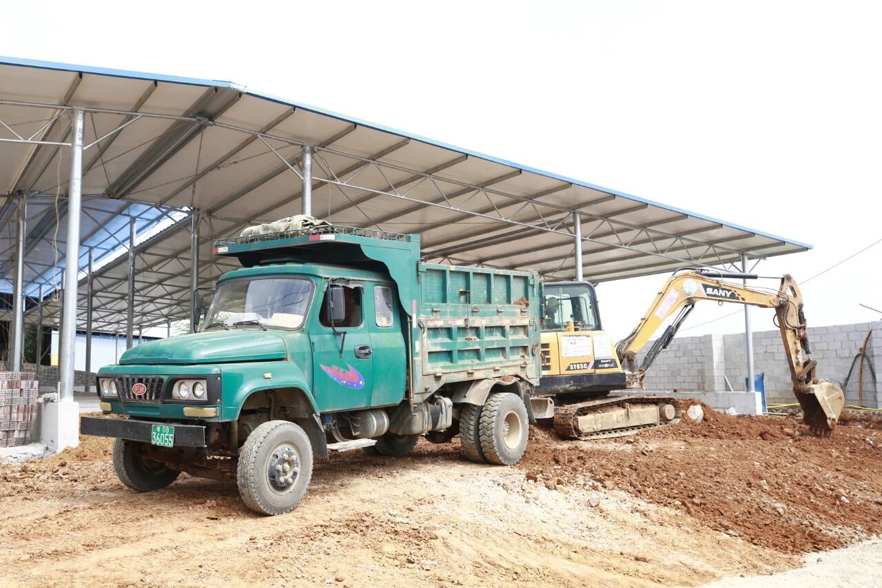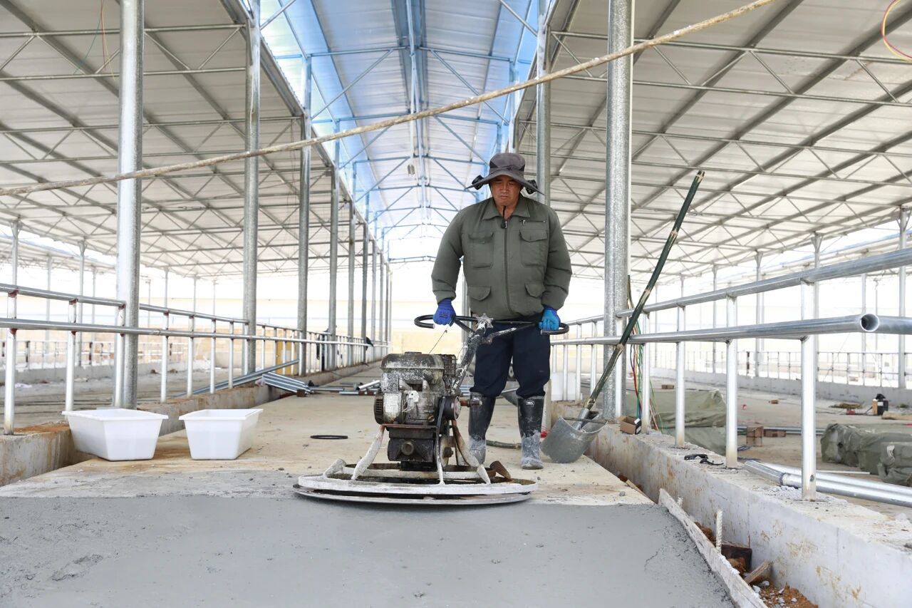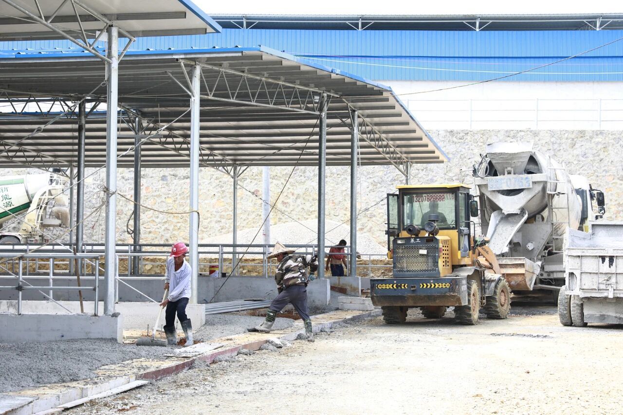 9月18日,位于进德镇的柳州鑫麦穗农业科技有限公司智慧肉牛养殖项目现场,焊花飞溅、机械轰鸣,十余名工人分工协作,顶着烈日紧张进行混凝土浇筑作业,一派热火朝天的施工景象。