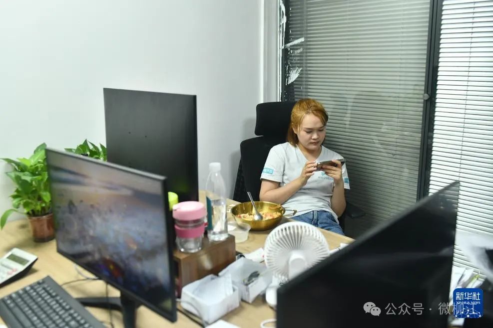 颜茜茜在公司办公室里休息(7月24日摄)。