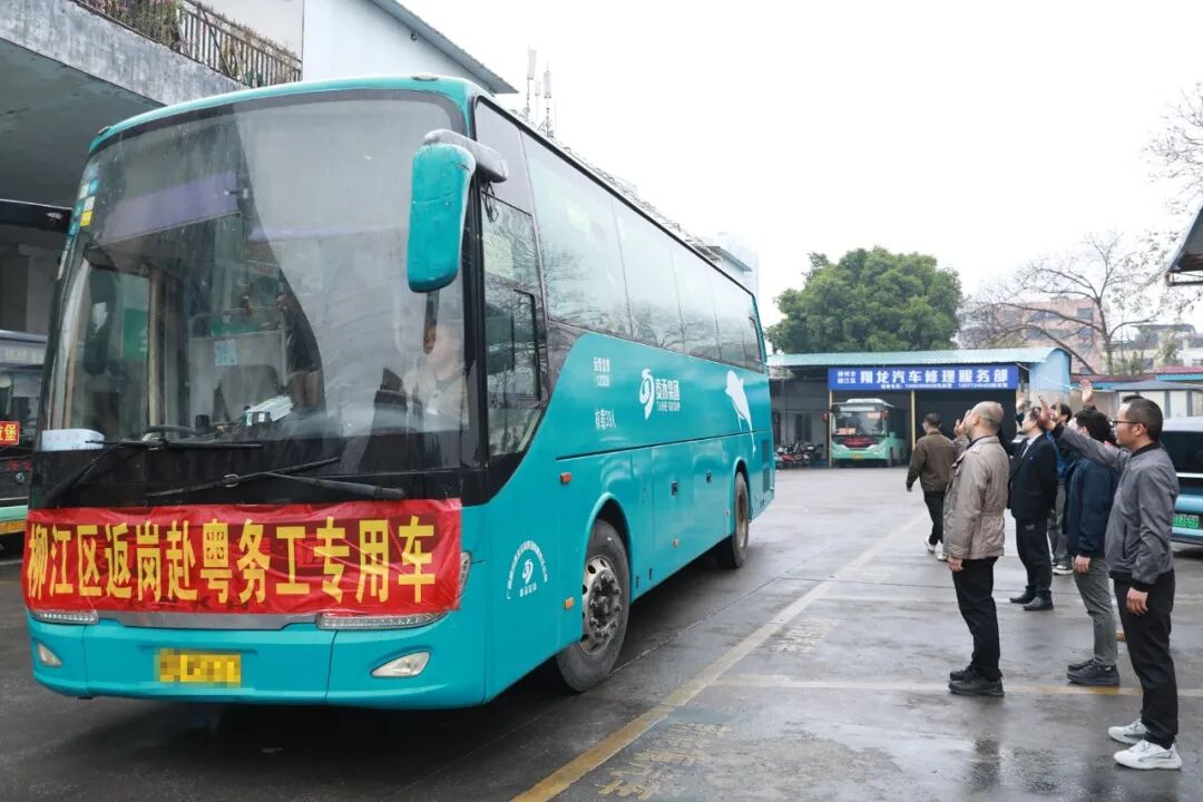 2月26日,柳江区开展2026年春节期间农民工返岗复工“点对点”赴粤专列送工服务活动,辖区务工人员免费乘坐返岗赴粤务工专用车,前往柳州火车站,统一换乘赴粤返岗专列,开启新一年增收旅程。