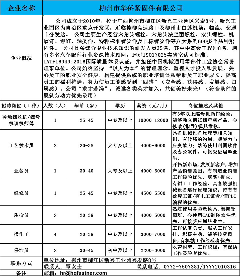1、柳州市华侨紧固件有限公司