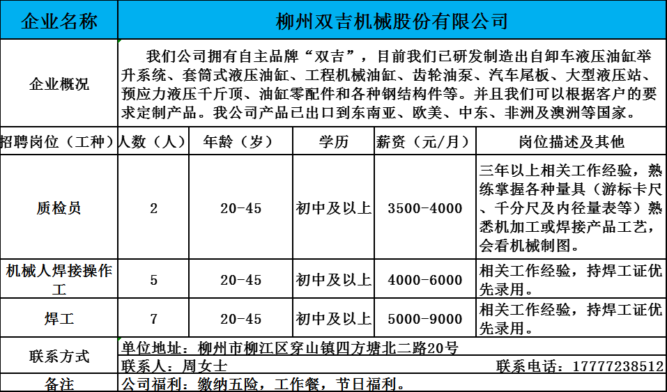 5、柳州双吉机械股份有限公司