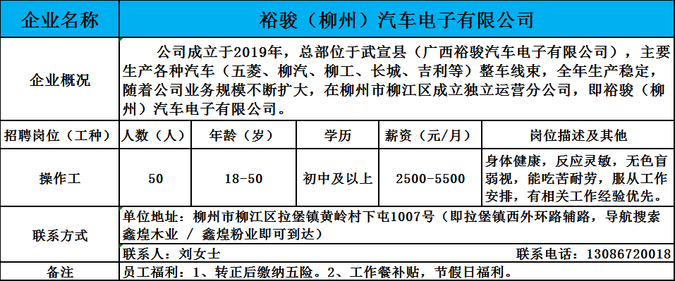 7、裕骏(柳州)汽车电子有限公司