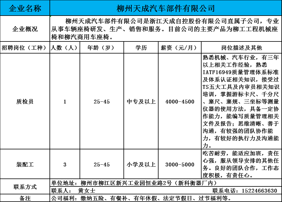 8、柳州天成汽车部件有限公司