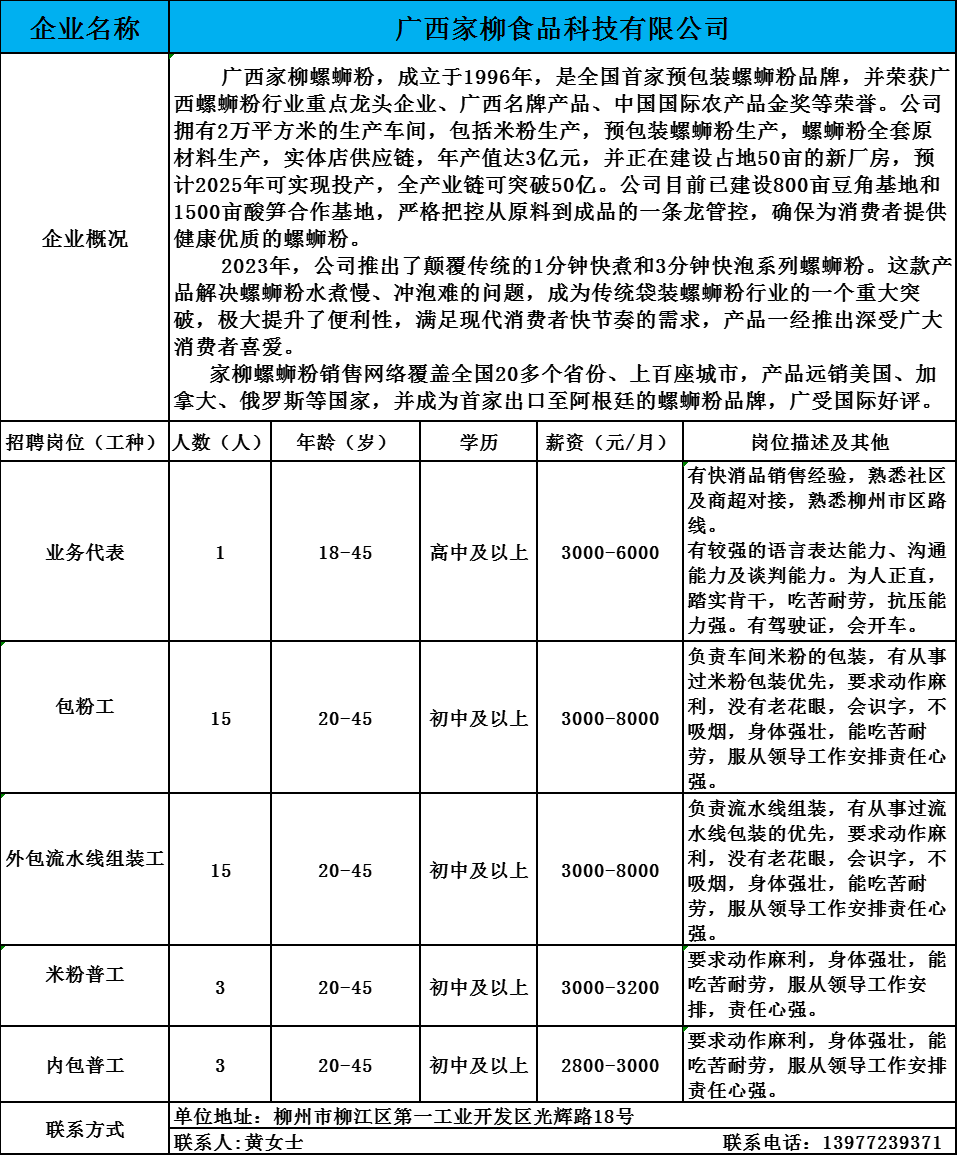 1、广西家柳食品科技有限公司