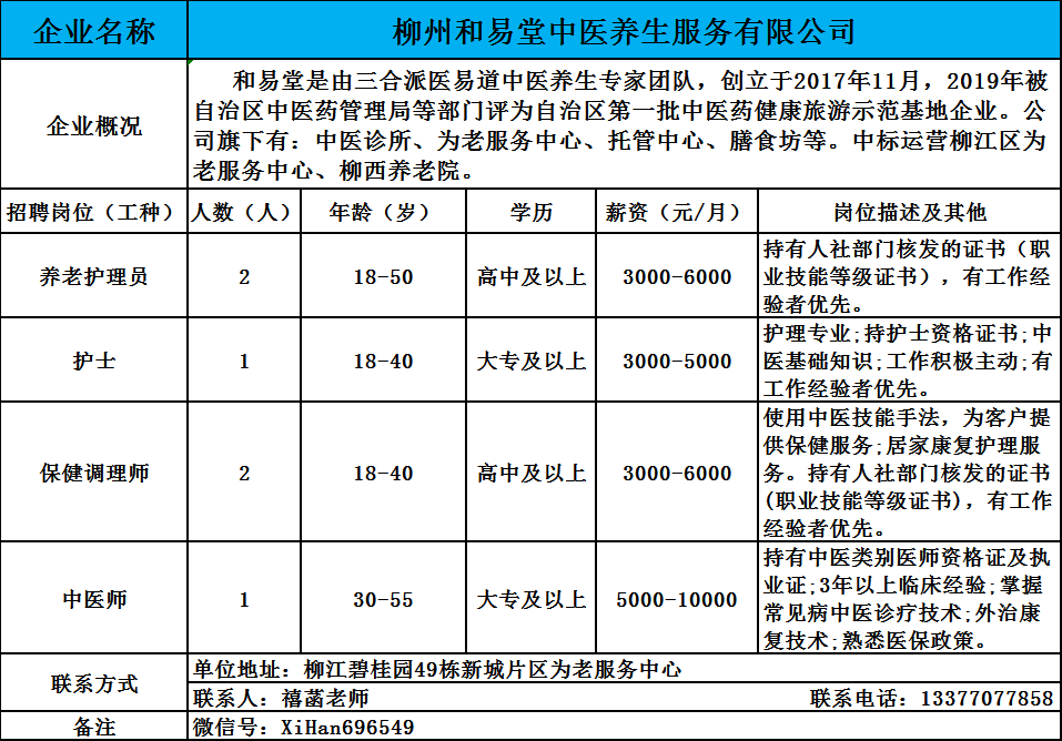 1、柳州和易堂中医养生服务有限公司