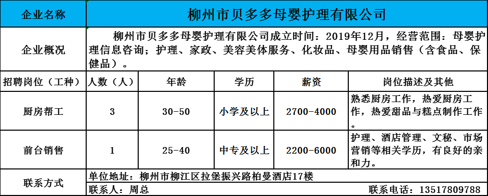 2、柳州市贝多多母婴护理有限公司