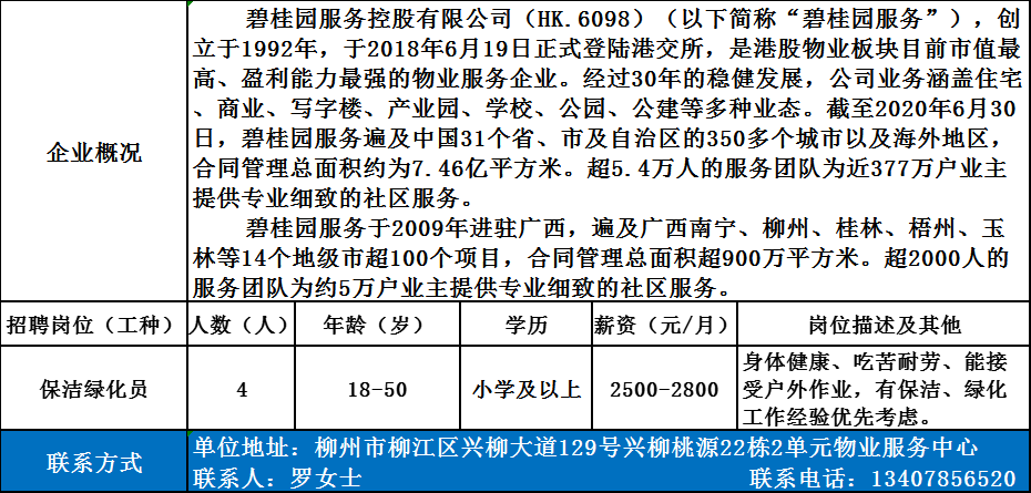 碧桂园生活服务集团股份有限公司柳江分公司