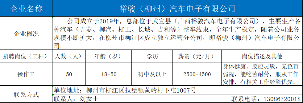1、裕骏(柳州)汽车电子有限公司