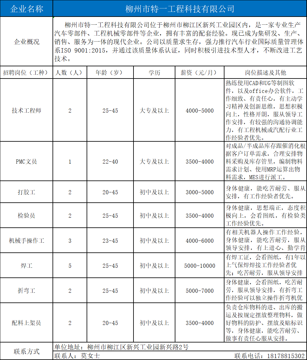4、柳州市特一工程科技有限公司