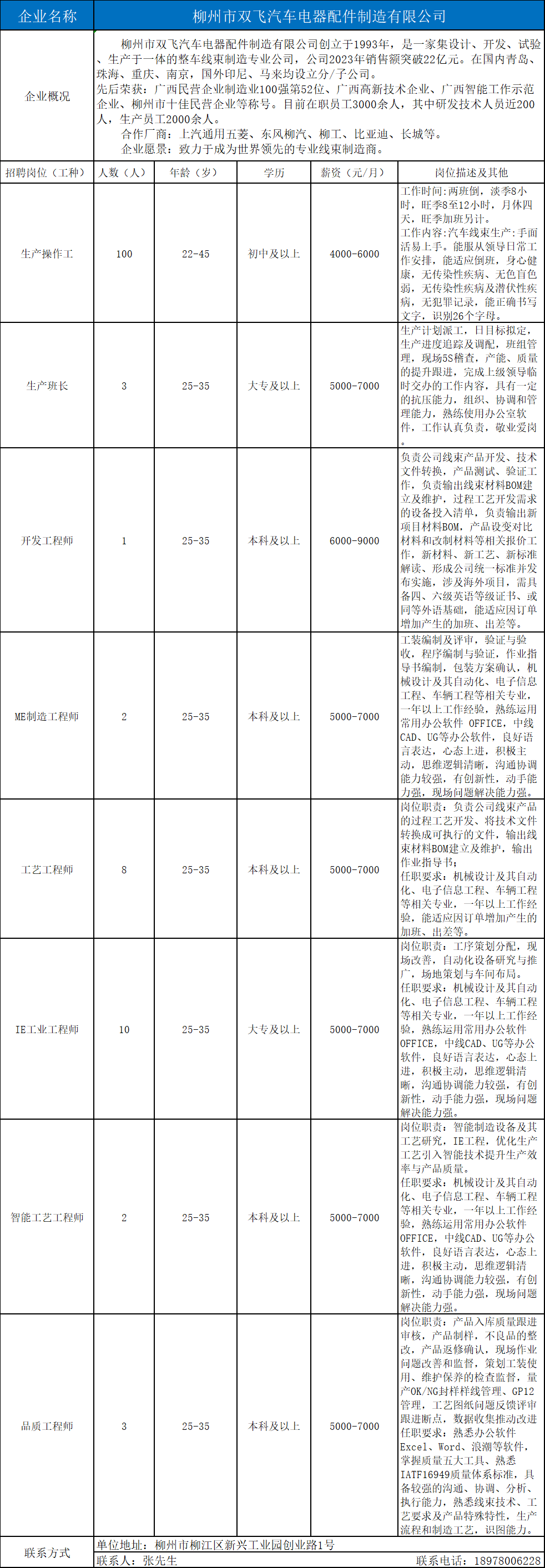 9、柳州市双飞汽车电器配件制造有限公司