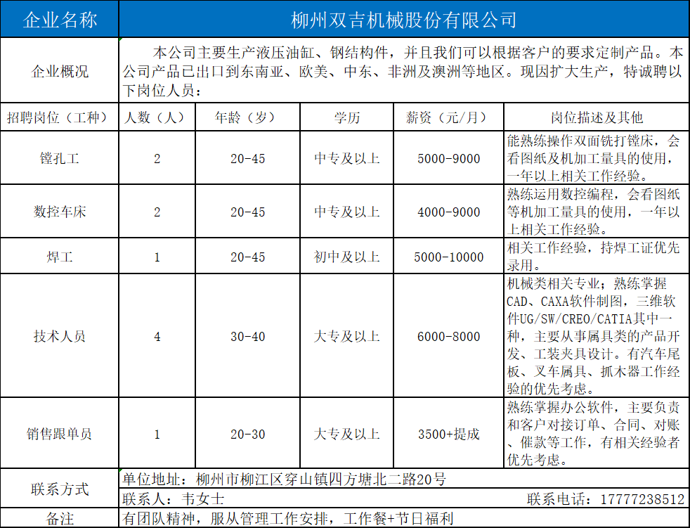 13、柳州双吉机械股份有限公司