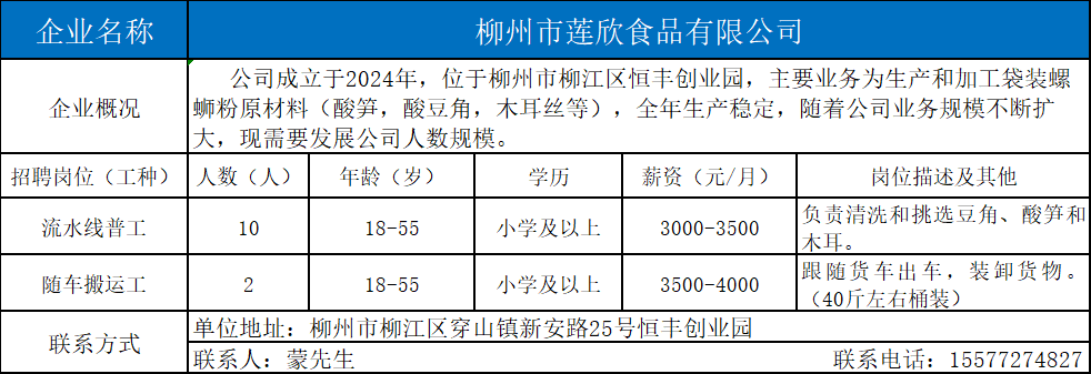 1、柳州市莲欣食品有限公司