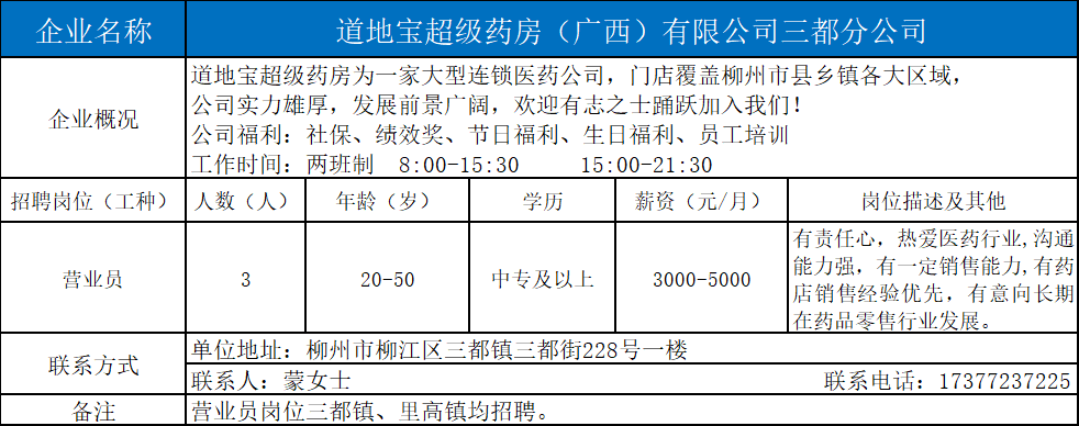 2、道地宝超级药房(广西)有限公司三都分公司