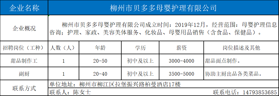3、柳州市贝多多母婴护理有限公司