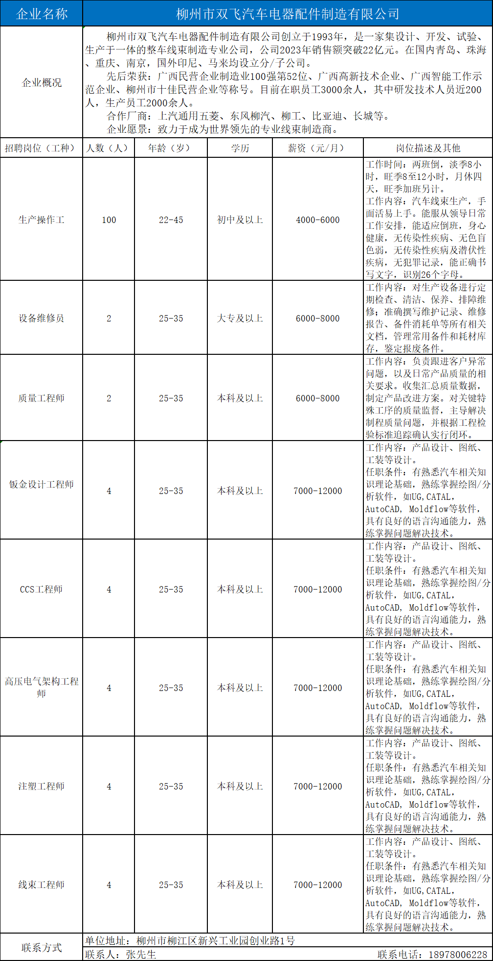 1、柳州市双飞汽车电器配件制造有限公司