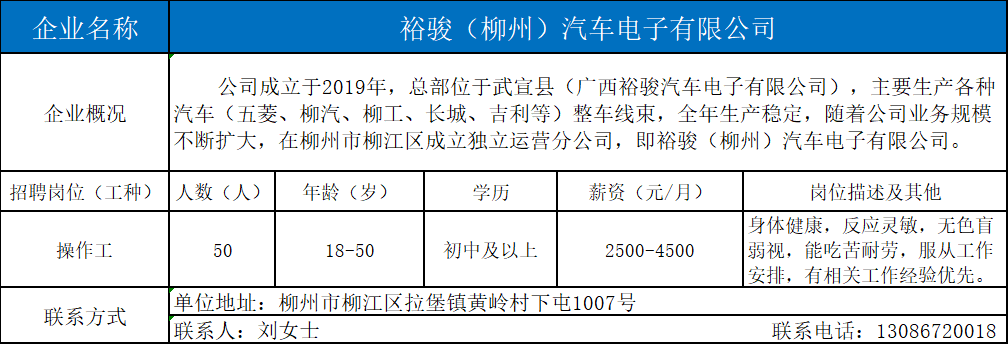 2、裕骏(柳州)汽车电子有限公司