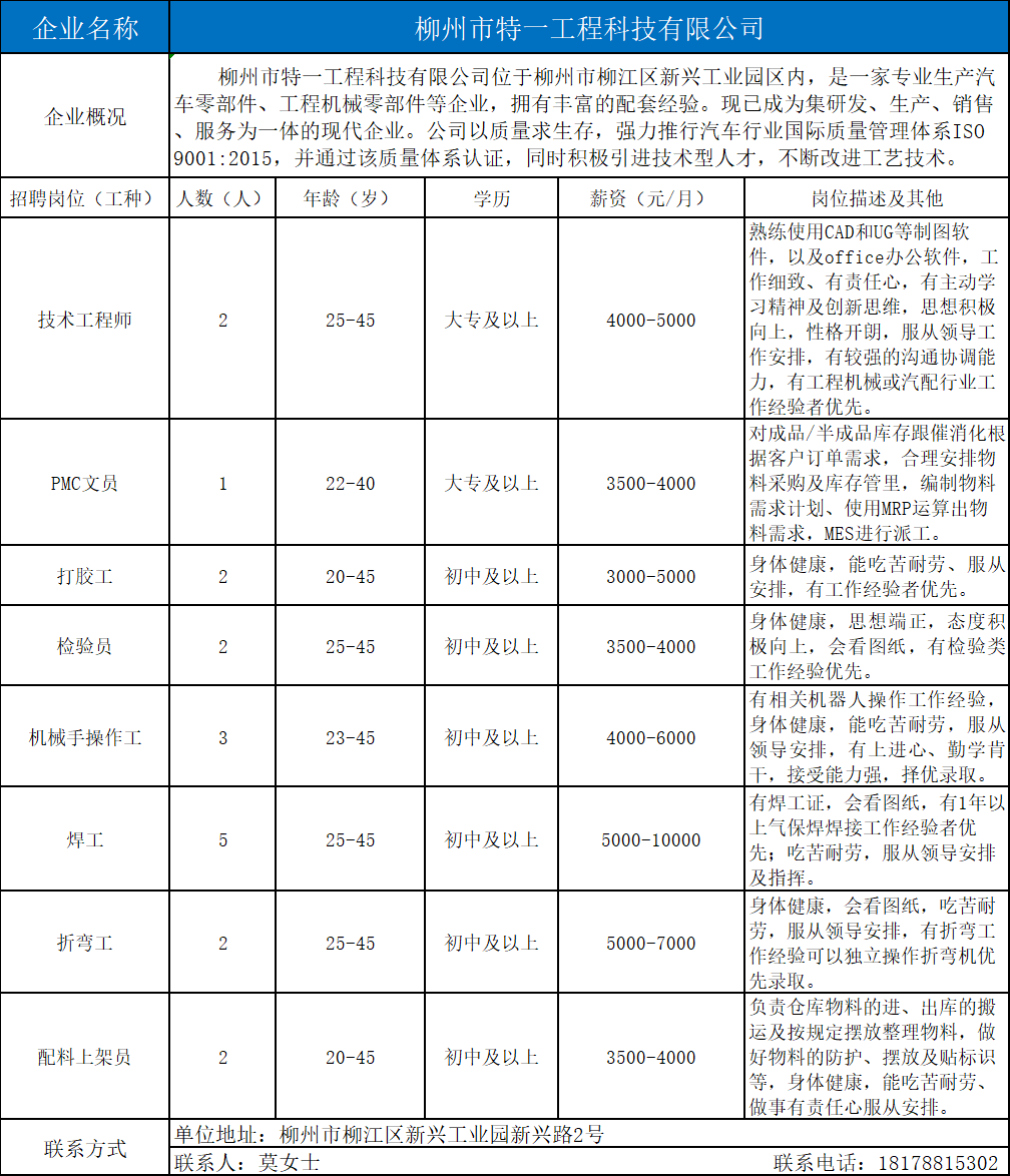 5、柳州市特一工程科技有限公司