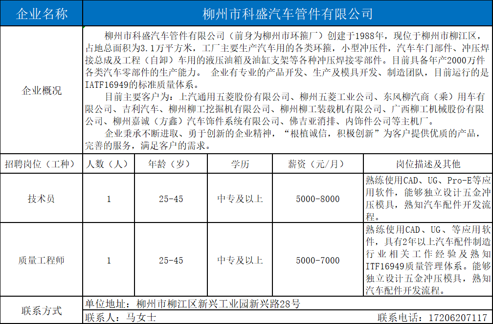 17、柳州市科盛汽车管件有限公司