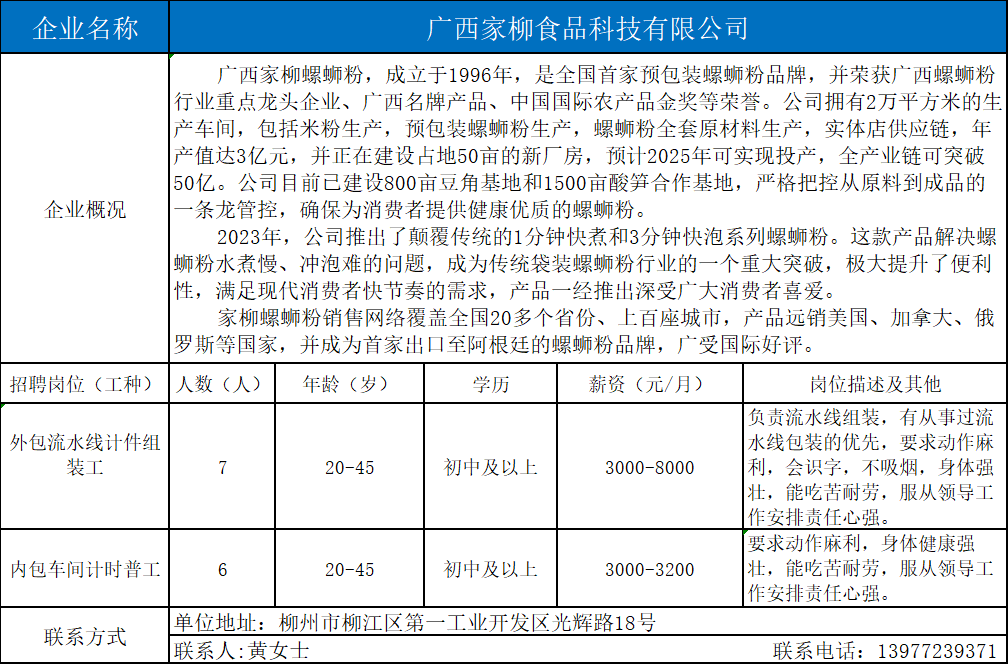 1、广西家柳食品科技有限公司