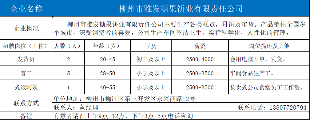 4、柳州市雅发糖果饼业有限责任公司
