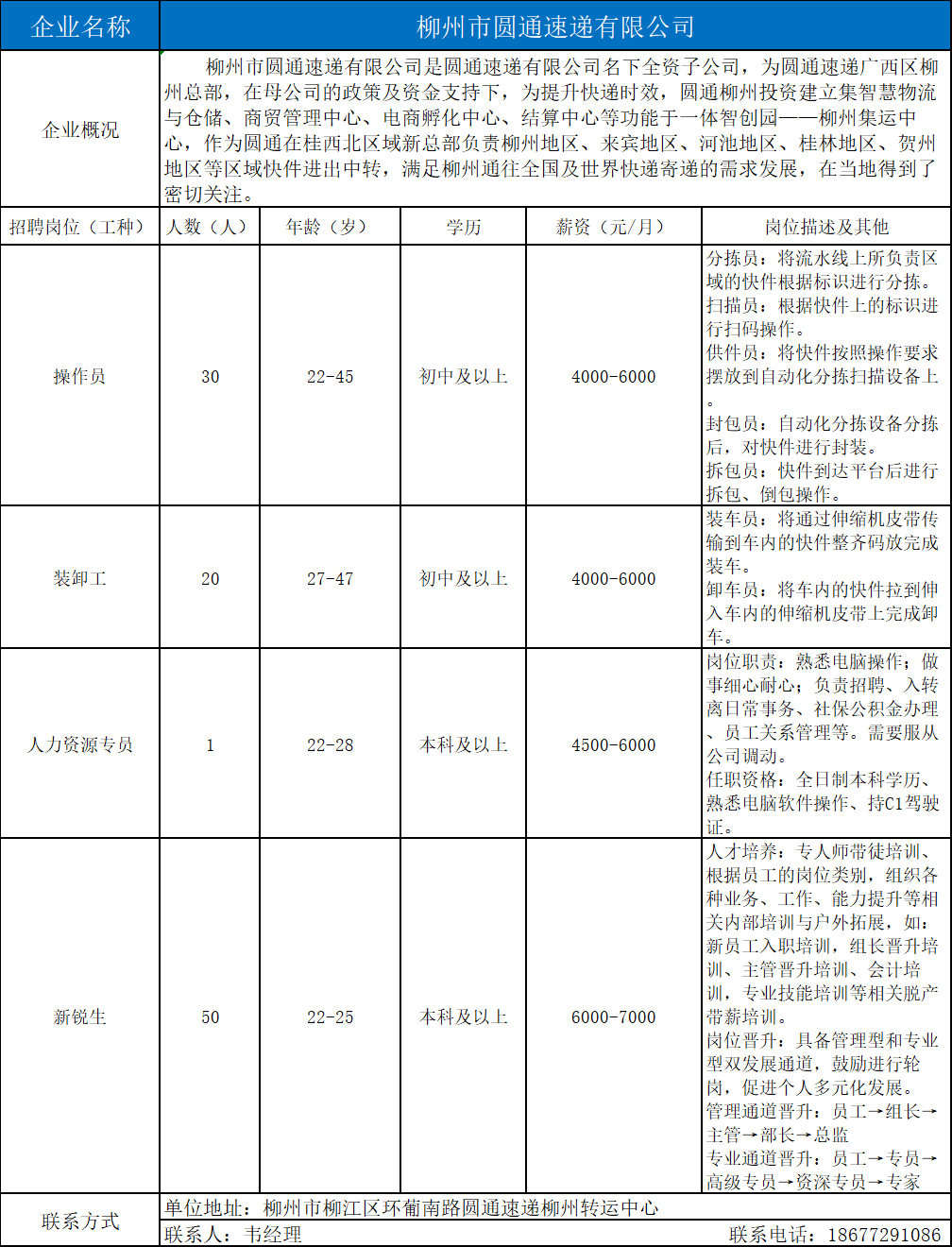 1、柳州市圆通速递有限公司