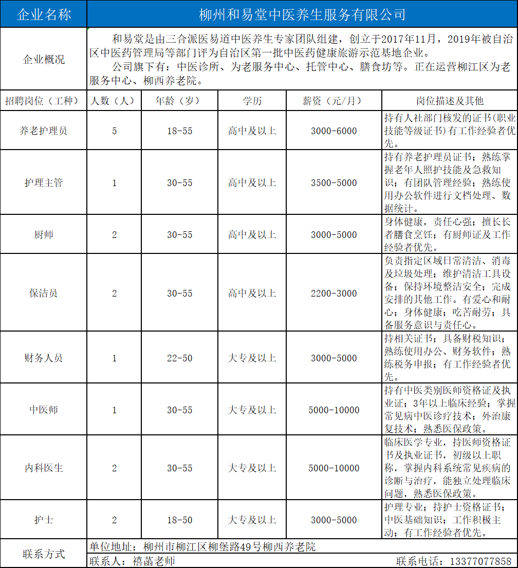 1、柳州和易堂中医养生服务有限公司