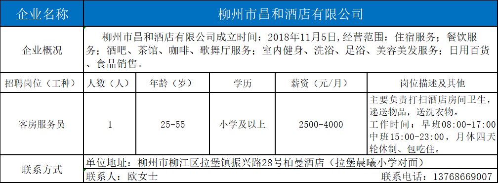2、柳州市昌和酒店有限公司