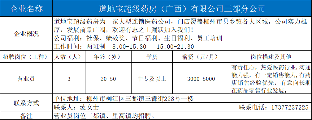 4、道地宝超级药房(广西)有限公司三部分公司