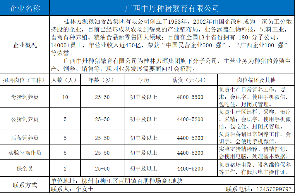 1、广西中丹种猪繁育有限公司