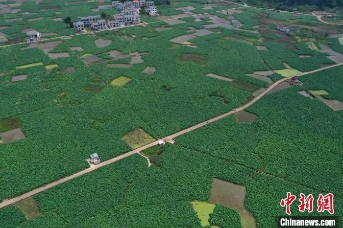 图为航拍广西柳州柳江区百朋镇万亩荷塘。兰德波 摄
