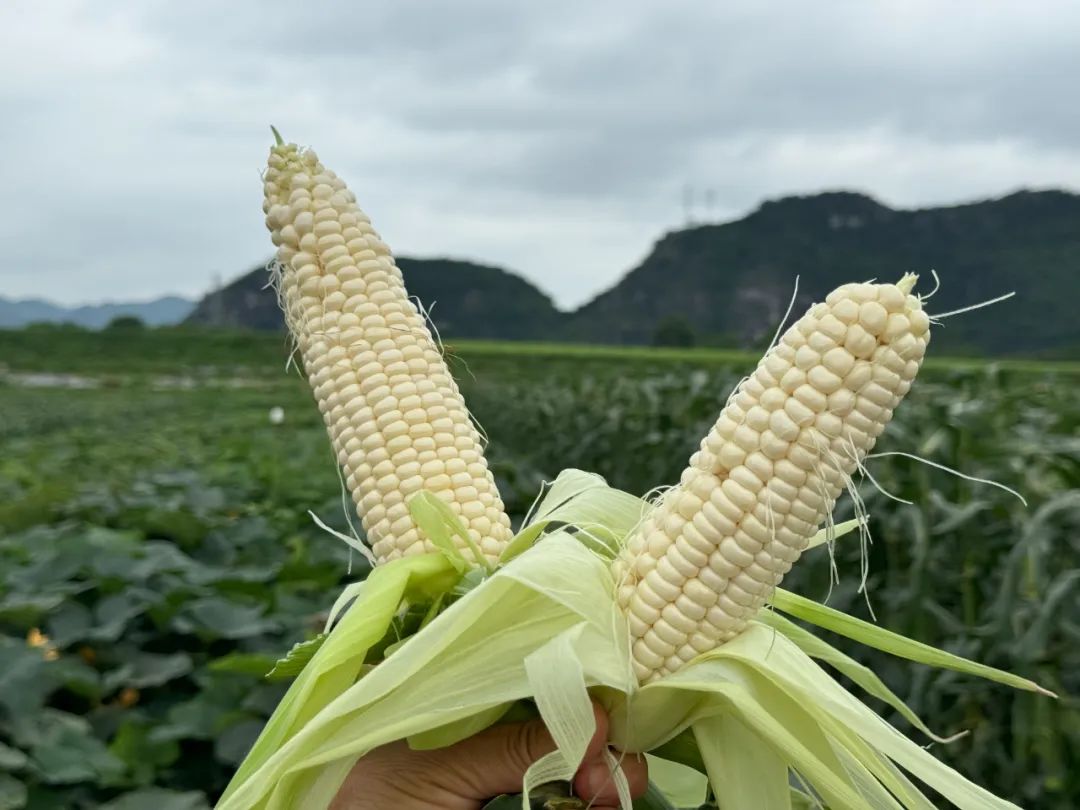 6月23日,记者走进绿油油的玉米地,农场负责人曾祥权随手掰下一根玉米展示:“咱们这可不是普通玉米!”剥开翠绿苞叶,奶白色的玉米粒晶莹剔透,一股混合着奶香与清甜的气息扑面而来。“这是柳州首批可直接生食的'晶白甜'牛奶玉米,甜度比西瓜还高,咬下去满满爆浆感,越嚼越有牛奶清香!”曾祥权介绍,这批玉米4月与南瓜套种,生长期仅60天,比普通玉米缩短40多天,如今已迎来采收旺季。
