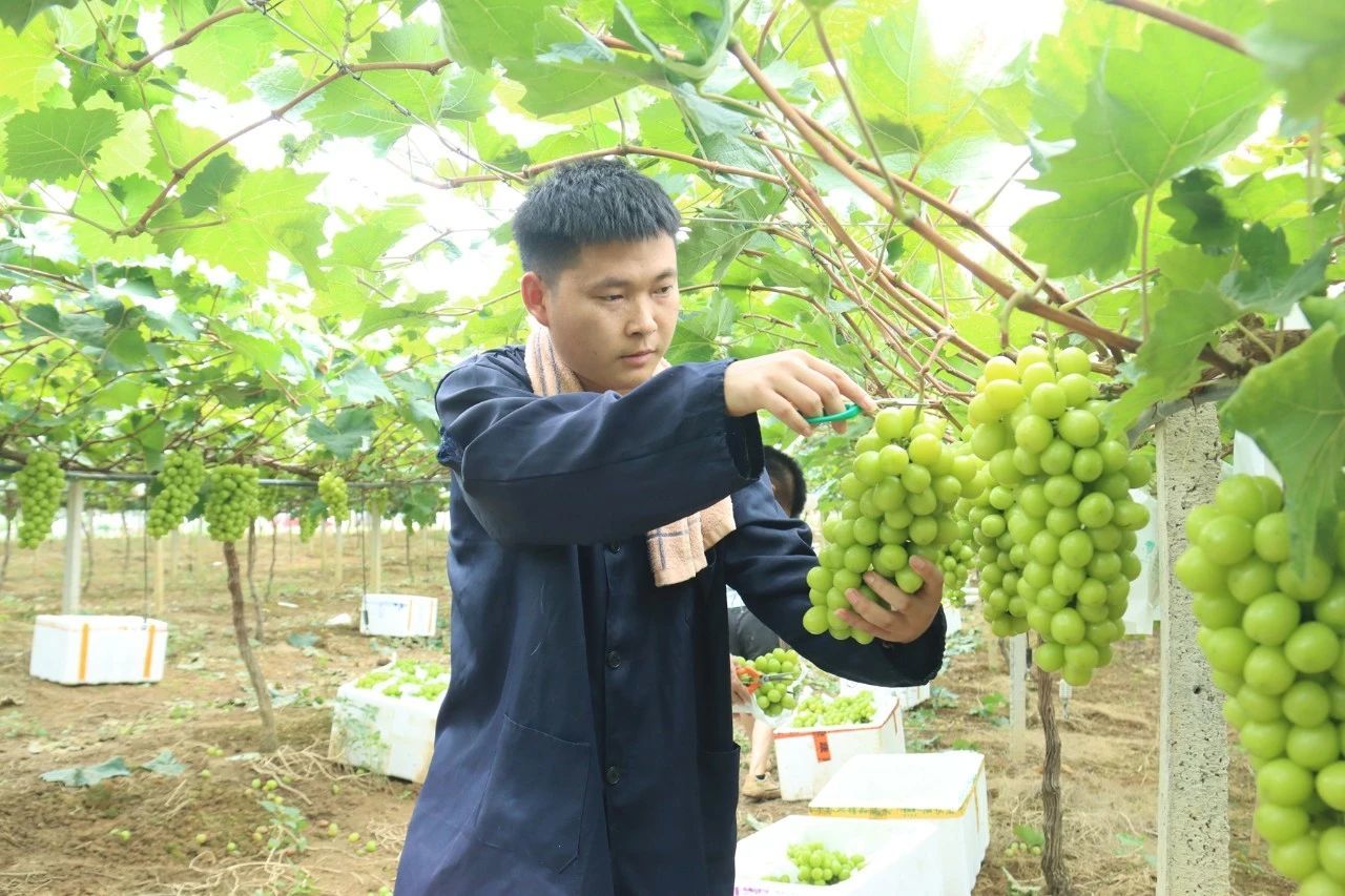“现在正是阳光玫瑰葡萄的销售旺季,每天都有大批果商前来收购,高峰期日发货量可达2000斤左右。”张喜夺介绍道,“今年我种植13亩阳光玫瑰,亩产量3000至4500斤,自7月中旬进入采摘期以来,每天采摘量2000至4000斤,批发价每斤4.5元,采摘期可持续至8月底。”鲁比村在阳光玫瑰种植过程中严格推行标准化技术,通过科学控产、精细化管理,确保每一串葡萄都达到优质标准,产品在市场上供不应求。