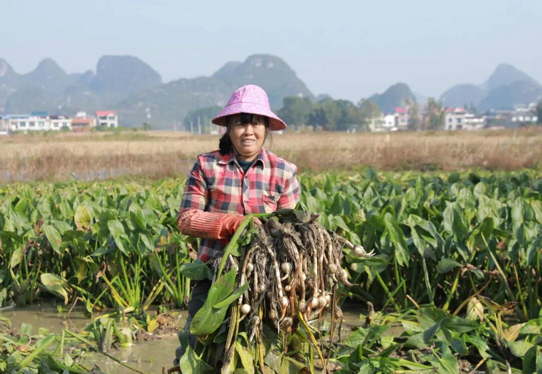 “我种慈菇二十多年,算是村里的老种植户。今年精心打理田间,水肥管理格外用心,种出的慈菇个头饱满、表皮光洁、形态匀称,不管是打边炉还是炒腊肉,口感都粉糯香甜。今年品质比往年更胜一筹,收购商直接到田间地头订购,根本不愁卖!”怀洪村种植户韦玉桐捧着刚采挖的新鲜慈菇,言语间满是自豪,脸上洋溢着丰收的喜悦。