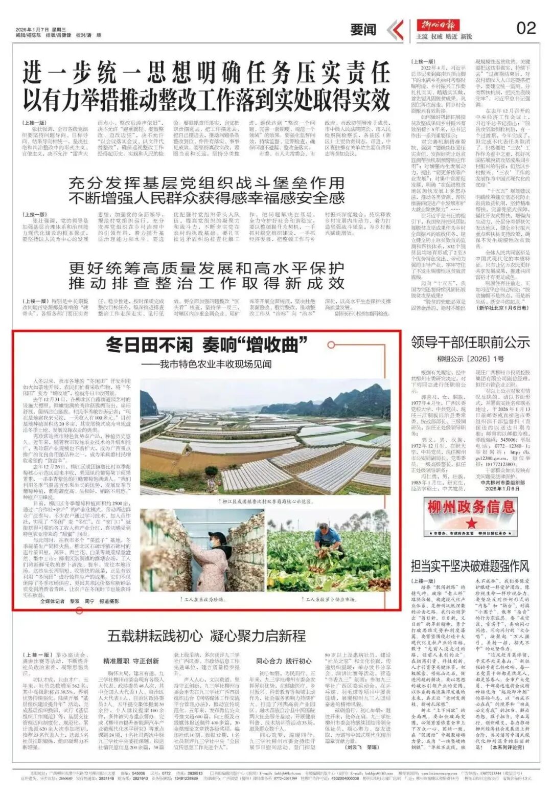 柳江区改革创新活力持续迸发,备受各级媒体广泛关注。人民网、中国新闻网、广西云、南国今报APP、《柳州日报》《柳州新闻》、柳州1号APP等媒体平台集中关注、立体呈现,营造出昂扬奋进的舆论声势。报道内容围绕特色产业升级、科技赋能农业、重点项目推进、文旅融合发展等维度,全方位展现柳江筑牢产业根基、强化创新驱动、提升民生品质的坚实步伐,凝聚起推进高质量跨越式发展的强劲动能。相关重点稿件,让我们一同回顾。