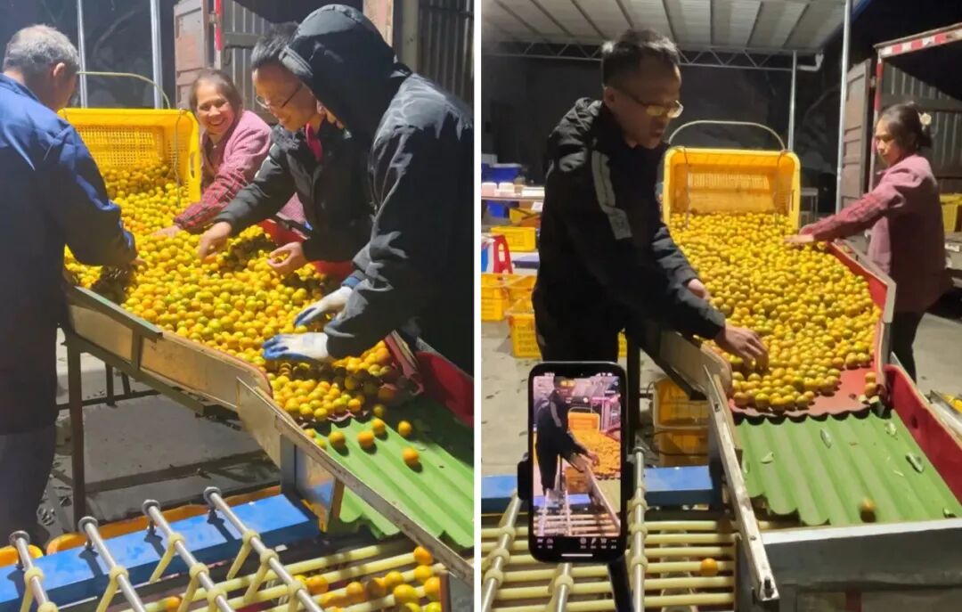 直播现场,电商达人韦文新一边热情地介绍土博金桔的特点和优点,一边拨弄着分级选果机上的金桔,筛选特果、大果、中果、小果,不时向直播间的网友展示金桔,让大家直观了解土博金桔品质,更加放心的下单购买。